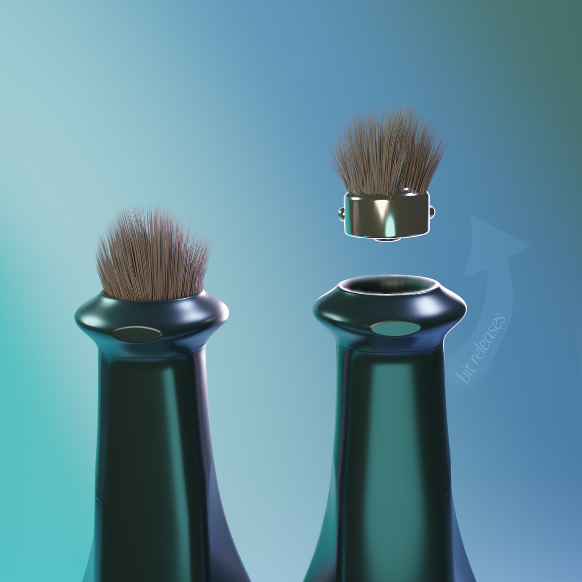 In this stage the product is brought to life and placed in the context of its use to elevate the purpose. klar specifically speaks to users who want a single tool that can solve a lot of issues. klar tackles interchangable brush bits, motorized function for less mobility requirements for user, and the ability to clean the tool as easy as it is to use.