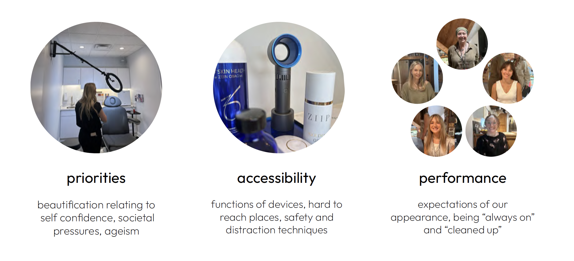 klar stems from a collection of in-person interviews and observations of people in their daily lives, including estheticians and artists. Further research was conducted through a survey and deep analysis of products used by the target market