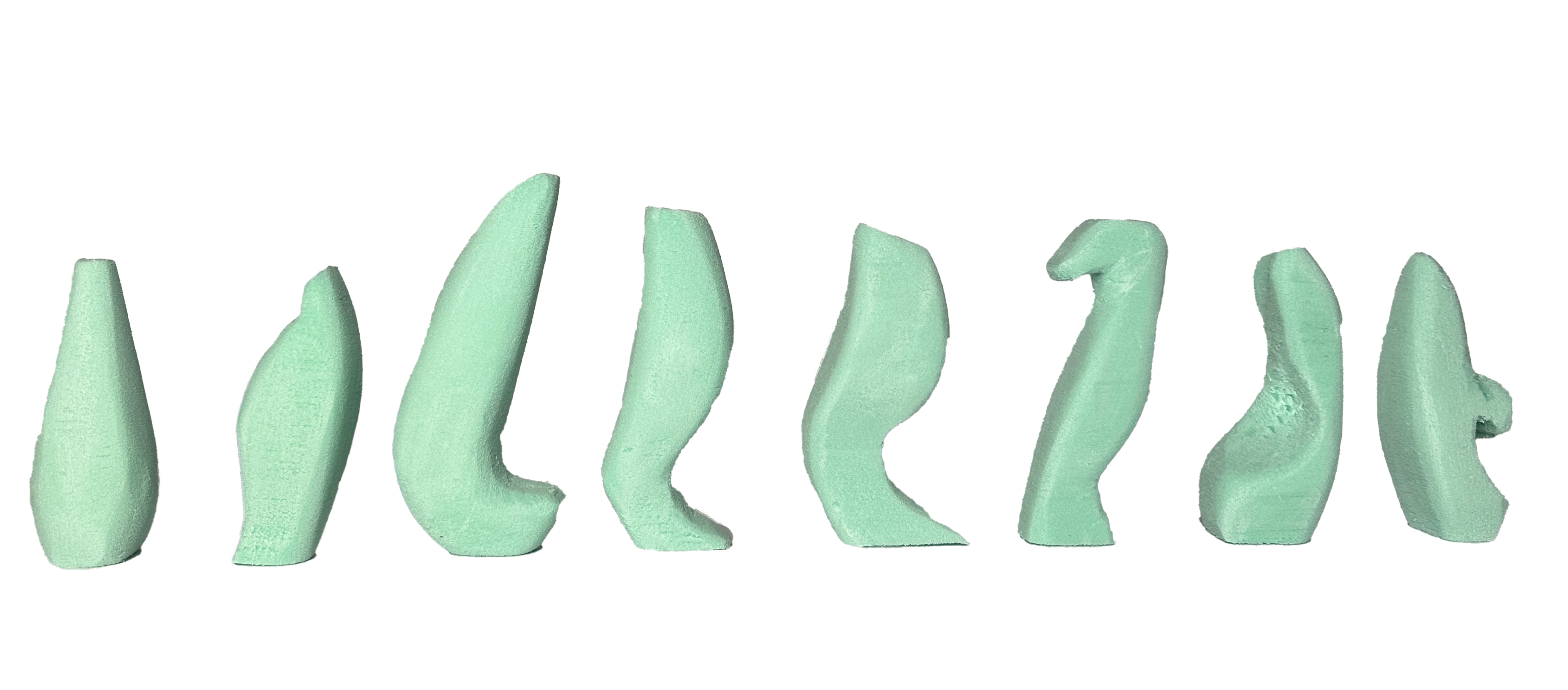 The exploration took form through sketches, foam models, 3D PLA printing from digital models.